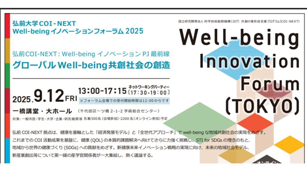 弘前大学COI-NEXT『Well-being イノベーションフォーラム2025』にて特別講演