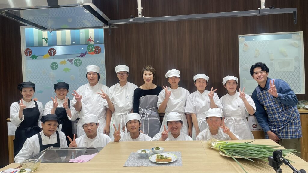 当日は、徳島の隠れた名産「渭東ねぎ」を使ったクッキングライブ『うまいッ!渭東ねぎの魅力どっさり!クッキングあわ~』を、地元の高校生たちと一緒に行い、ご一緒のNHKのアナウンサーも「チョット?!」と、とっても可愛い方で楽しいライブになりました。